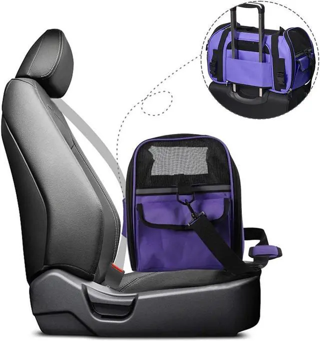 • TRAVEL WITH CONFIDENCE: The safety belt loop allows the carrier to be restrained with a vehicle seat belt for car travel. Soft-sided carrier designed to make traveling with your furry friend easier.