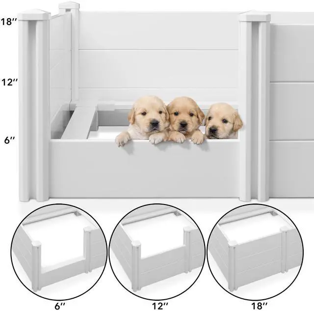 The SmithBuilt whelping box is designed to provide a safe, comfortable, and easy-to-clean space for small to medium breed dogs and their newborn pups. Made from heavy-duty PVC, it features a smooth, non-porous surface for effortless maintenance. The 18 high walls offer clear visibility for monitoring puppies while preventing escapes, ensuring a secure and cozy environment for childbirth and early development. Its spacious design includes an adjustable entryway with three height options allowing mama dog easy access while keeping puppies safely contained.