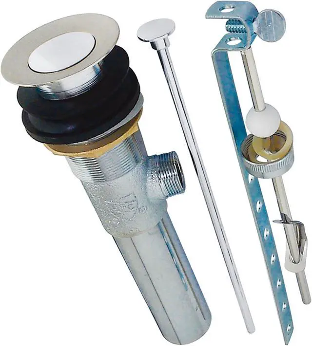 The Pop-up drain assembly consists of a drain, a rod and pop-up lever. Each of the products are made of solid brass construction for durability and reliability. Brass Construction. Mounting hardware included. Easy Installation. Easy Installation. 1-1/4" Diameter Tube. Fit to all 2" Drain Opening vessel sink. Spray Nozzles:. Finish: Satin Nickel & Chrome. Material: Brass. Style: Classic. Dimensions:. Width: 2.86. Length: 8.71. Height: 2.86