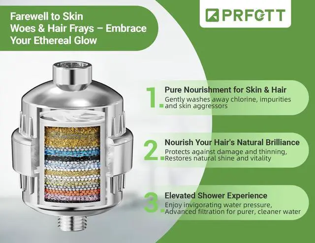 • 25-Stage Shower Filter Instant & Powerful Filtration:Removes 99.99% of chlorine and 99% of harmful contaminants (heavy metals, fluoride, sediments) in just 0.2 secondsensuring every drop is cleaner, safer, and gentler on hair & skin