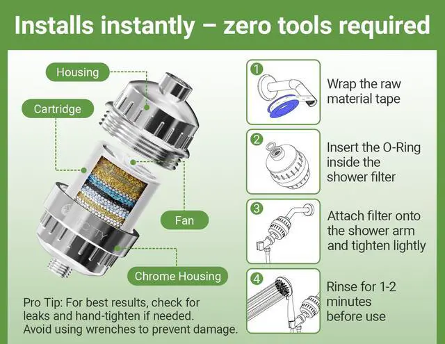 • Innovative Fan Technology :Our unique spinning shower head filter cartridge maximizes water contact with filtration media, achieving 100% water utilizationno waste, just pure, efficient filtration