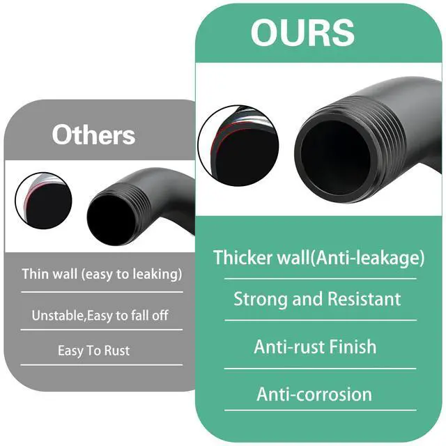 - Metal:Shower arms are made of high quality stainless steel and are strong and resistant to corrosion