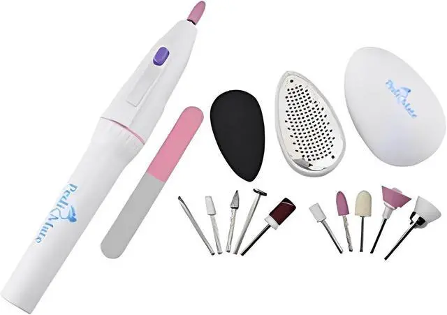 As Seen on TV - The 18-piece set includes all the essential tools you need for a thorough pedicure experience. Crafted from high-quality materials, each tool in this set is designed for precision and durability, ensuring long-lasting performance. You have 2 ergonomic batteries specially designed to remove dead skin, an electric appliance, 10 ends for smoothing and finishing of nails, a battery for nails and 4 accessories that can be used for the subsequent smoothing of the heels and the rest of the foot. Enjoy healthy and beautiful feet, without costly expenses, no time wasted and all this from your own home, only with the help of Pedi Mate products.
