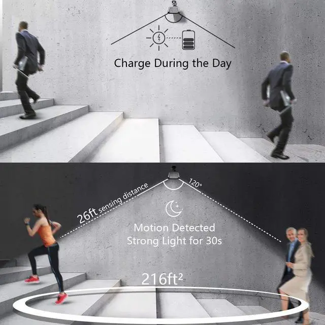 -The 9 cm Installed stents helps you to get the better sunlight, charge more quickly, and expand the illumination area. -This solar light is equipped with upgraded high power 36 LED beads to provides light for your property all night. -Solar Gutter Wall lights absorb sunlight at daytime and turn on automatically at night when motion is detected. The range of motion sensor from 3 to 8 meters (10-26 feet) at up to 120 angle. The illumination stay on for approx 30s, which is save power and own more longer lifetime than other similar products at the market.