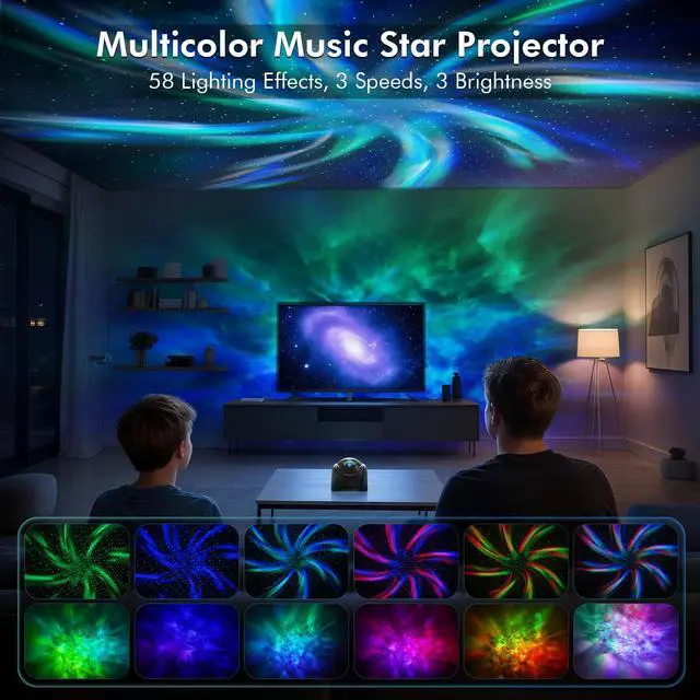 Immerse Yourself in a 5-in-1 Dual Galaxy Projector: Rossetta projector combines an advanced dual-lens star projector, color-changing aurora lights, a soft-glow nightlight, a Bluetooth speaker, and a white noise sound machine. Its dual optical lenses project a vibrant, layered cosmos of twinkling stars and sweeping northern lights with 58 light effects onto your walls and ceiling, instantly transforming any room into a breathtaking personal planetarium for daily relaxation and a romantic ambiance Primary User Segments & Use Cases 1. Parents & Families Main Use: Sleep aids, calming bedtime routines, night lights Why: Parents use it to help kids fall asleep, reduce bedtime anxiety, and create peaceful environments for better sleep. Also, as a tool to teach kids about space and astronomy. Use Cases: Sleep Aid: White noise and calming visuals for a restful night Educational: Introduces kids to constellations and space exploration Night Light: Gentle light for a soothing, anxiety-reducing bedtime Interactive Play: Fun light patterns during story time or play Nursery Use: Soothing light for babies and young children 2. Young Adults & Teens Main Use: Aesthetic room decor, mood lighting, party vibe Why: Teens love it for setting the mood in their rooms, for parties, or for just relaxing with cool, dynamic lighting. Use Cases: Room Decor: Transform a bedroom or dorm into a cosmic wonderland Party Lighting: Sync lights with music to create a fun, energetic atmosphere Relaxation: Create a chill vibe to unwind after a busy day Gaming: Enhance the atmosphere of gaming rooms and setups 3. Adults Seeking Relaxation Main Use: Stress relief, meditation, romantic ambiance Why: Adults use it for relaxation, meditation, creating romantic settings, or setting the right mood for a home theater experience. Use Cases: Stress Relief: Soothing light and sound to calm the mind Meditation: Ideal for mindfulness and creating peaceful environments Romantic Vibes: Perfect lighting for date nights or special moments Home Theater: Ambient lighting for movies and entertainment 4. Pet Owners Main Use: Engaging active pets, especially cats Why: Pets are entertained by the moving lights, making it a fun and engaging experience for animals, especially cats. Use Cases: Pet Entertainment: Cats and pets love chasing the moving lights Interactive Fun: Keeps pets engaged and entertained indoors 5. Gift Buyers Main Use: Unique gifts for various occasions Why: A fun, unique gift for space enthusiasts, teens, and young adults. Use Cases: Gifts for Teens & Adults: Perfect for birthdays, Christmas, Valentines Day, and housewarmings Special Occasions: Great for holidays and gift-giving moments Top Use Cases for All Segments Sleep & Relaxation: Use white noise and calming visuals to help with insomnia, anxiety, and to create a peaceful, restful environment. Room Decoration: Makes any roombedroom, living room, game roomfeel like a cosmic adventure. Party & Entertainment: Create an exciting atmosphere with sound-activated lights that sync to music for gatherings and parties. Children's Development: Stimulate curiosity about space, constellations, and astronomy with educational features for kids. Date Nights & Romance: Set the mood with intimate lighting for couples and special occasions. Gaming & Home Theater: Add a cool, immersive atmosphere for gaming rooms or movie nights with dynamic lighting. Baby Calming: Gentle lights and soothing sounds fo
