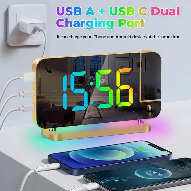 Electronic alarm clockCombines mirror, clock, alarm, night light,USB charging and other functions. It is not only a clock, but also a fashionable modern art decoration,