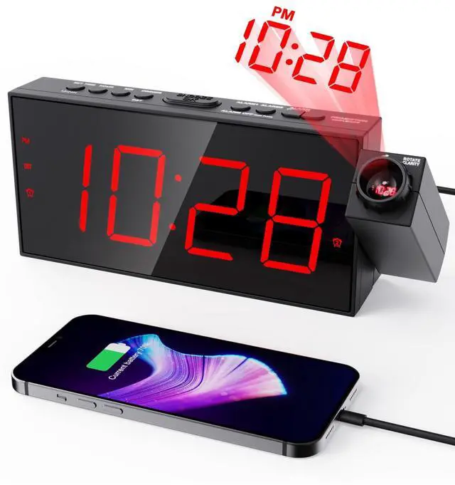 OnLyee projection clock features as 180° projector, dual alarm, snooze function , sleep timer and USB charging port. 7 inch LED display provides you a better viewing experience, especially for the elders and kids. A perfect choice for you to be aware of the time in the bedroom, kitchen and office.