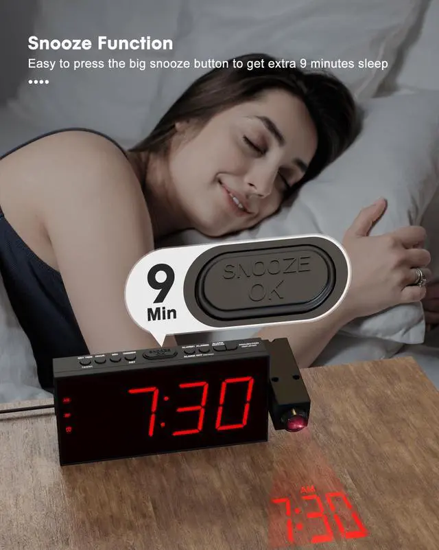 1.Press "OK/SNOOZE" button to temporarily turn off alarm for get extra 9 minutes sleep.