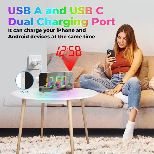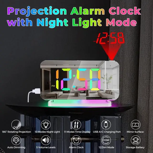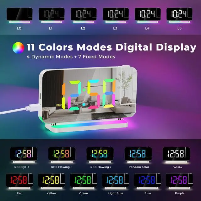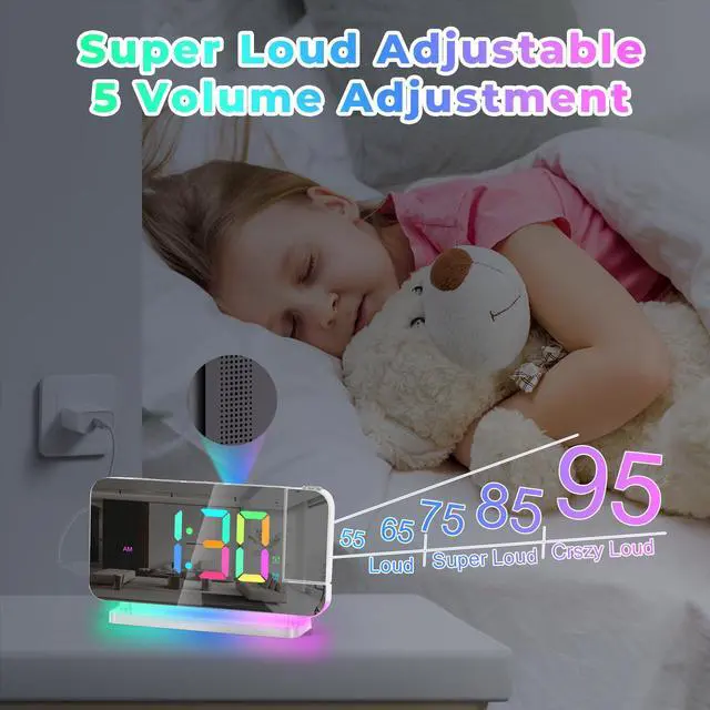 The alarm clock has 5 adjustable volumes: 55-65-75-85-95db.