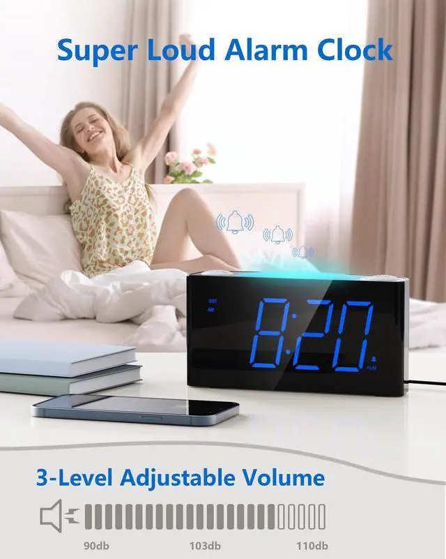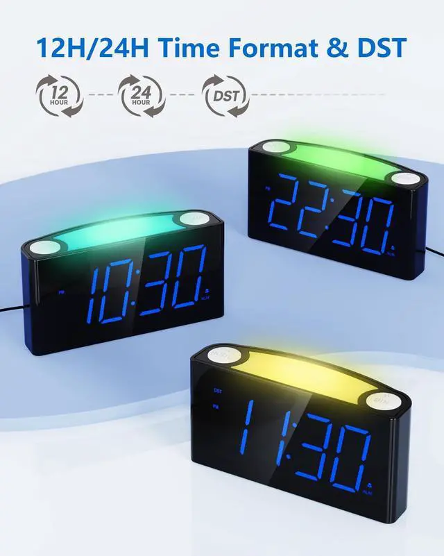 This bedroom alarm clock with Soothing color-changing night lights adding an element of charm to your nightstand at night.7 color options are available for you to set by simply press big top Night Light button.