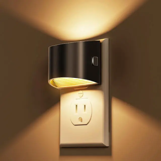 Unique Design -- Featuring a black cylindrical minimalist frame. The stylish and sophisticated outlook of night lights does not block the bottom outlet for other devices.