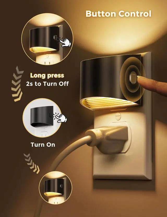 3 Level Brightness -- The button on the side of this plug in night light can adjust the brightness 30/60/100LM to meet your different brightness needs.
