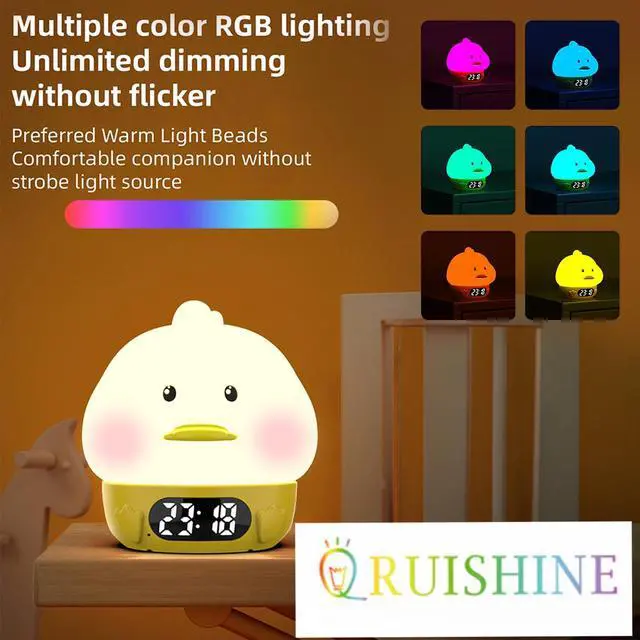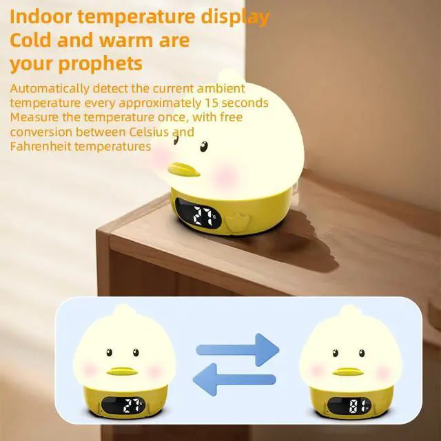 Alarm Clock Lights for Kids-Duck Night Lights,Temperature Display,RGB Color Changing, Wake up Timer, Rechargelable Touch Lamp for Breastfeeding,Silicone Baby Nursery Nightlight Duck
