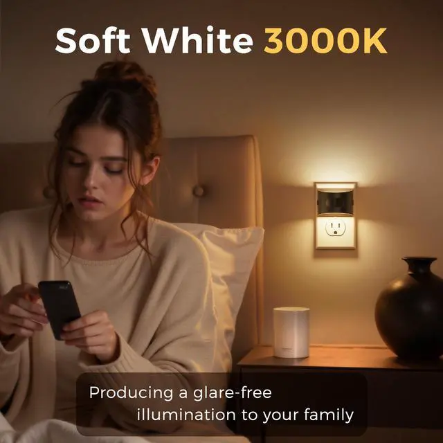 Safe & Energy Efficiency: This LED night light provide 3000K soft white lighting and you can move around your house without turning on the main lights at night. Glare-free and not dazzling.The maximum power consumption of the nightlight is only 1w. Which helps save electricity bills and protect the environment