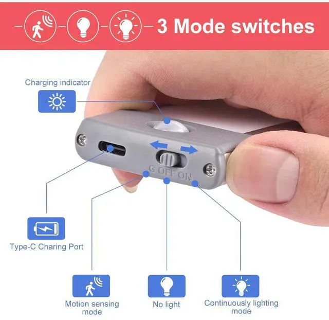 These stick on closet lights have a 3 mode switch which is On-Off-G to set it always ON,Off or Motion Sensor mode. Therefore, you can used these closet lights as normal night light for closet/cabinet/drawer or motion sensor light.under G mode and dark environment, these under cabinet lights will automatically senses human motion within 10ft/120°range and shuts off automatically after 20 seconds of no movement.