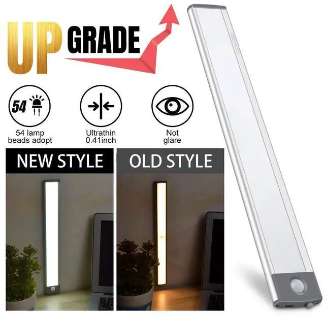 Side Luminous: This LED motion sensor cabinet lights with 54 lamp beads adopt a new design and production process. the LED lamp emits light on the side.the light is brighter ,but it is not glare and the light is quite soft.