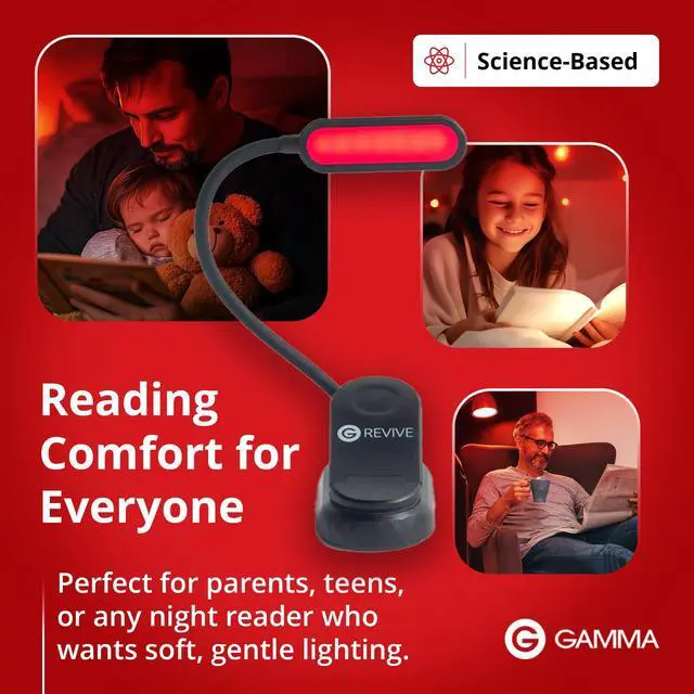 | About | Experience the Gamma Revive Reading Light – a modern, user-friendly device crafted to enhance relaxation and support better quality sleep. |