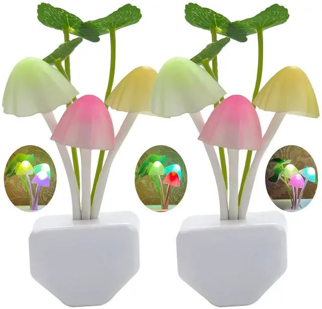 2 Pack Sensor LED Night Lights, Color Changing Plug-in Led Mushroom Dream Bed Lamp for Kids Children Adults, Dusk to Dawn Sensor Auto On/Off, Funny Wall Decor Gifts for Nursery Baby Bed Flower Lamp