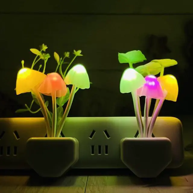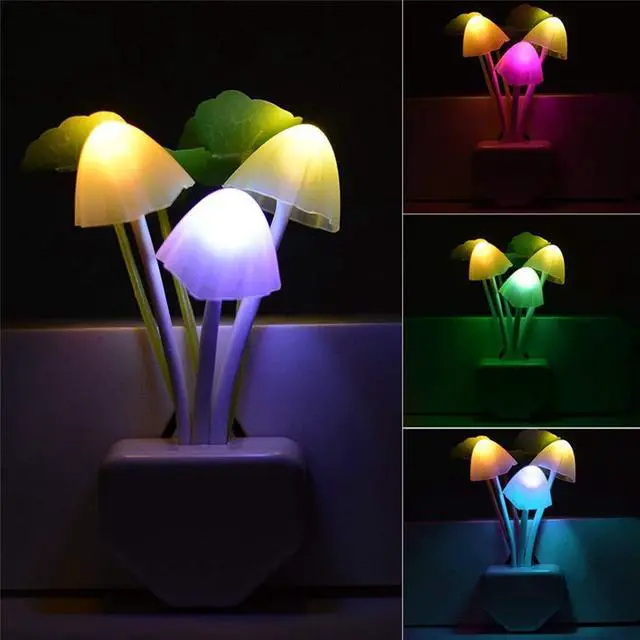 [Soft and Warm Light, Color Changing] -- The middle mushroom light bulb auto changes color, the left and right mushroom light bulbs do not change color, responsible for lighting. The middle mushroom light bulb can emit 7 kinds of lights in red, green, blue, purple, white, rose red, yellow and orange, and will continually switch among the 7 colors randomly, so you will see a colorful LED Night Light.