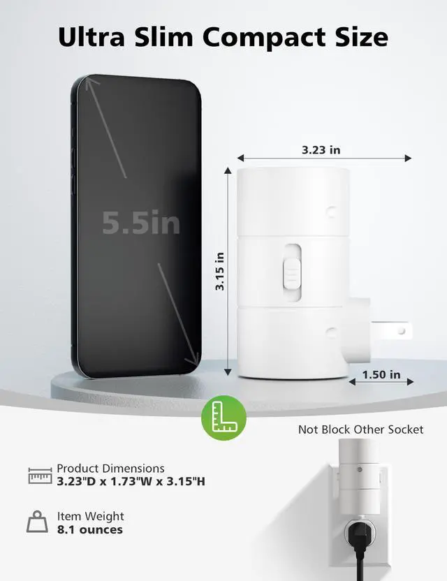 | Product Dimensions | 3.39"D x 1.85"W x 3.35"H |