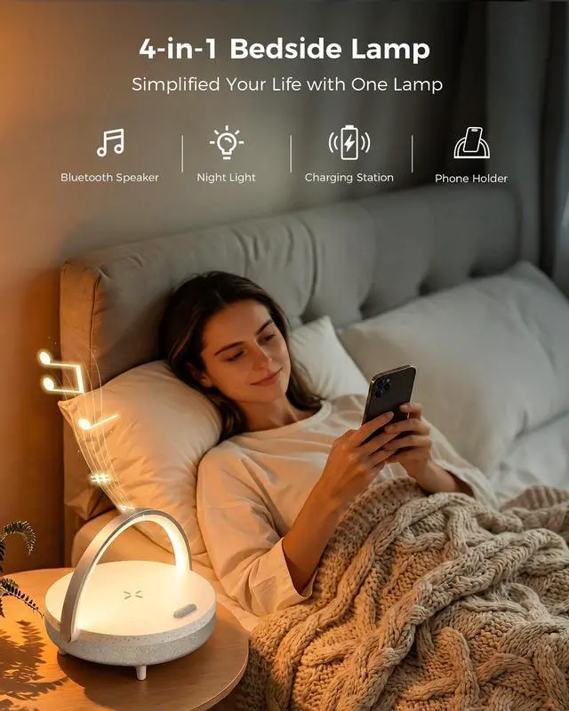 | Item Type Name | LED Night Light, EZVALO Music Bedside Lamp with Wireless Charger, 4 in 1 Touch Lamp, Portable Bluetooth Speaker, Phone Holder, Dimmable Wireless Charging Lamp Birthday Gifts for Women, Men, Dad, Mom |