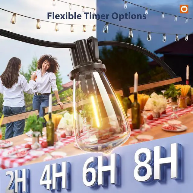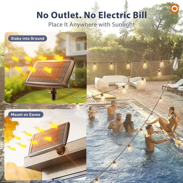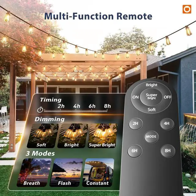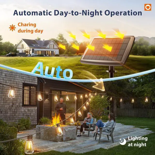 addlon High-Capacity Solar Lights Outdoor Designed for longer, brighter nights. These 102FT solar string lights include 32 shatter-resistant LED bulbs (2 spare), an upgraded remote control, and a detachable solar panel. No outlets requiredthe lights turn on at dusk and automatically switch off late at night to help save energy. Ideal for patios, gardens, porches, backyard, and camping