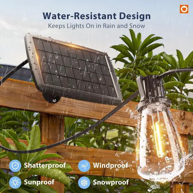 Shatter-Resistant & Outdoor-Ready Designed for outdoor use, these solar string lights outdoor waterproof feature durable plastic bulbs and reinforced wiring that help resist drops and changing weather conditionsmaking them suitable for long-term outdoor décor