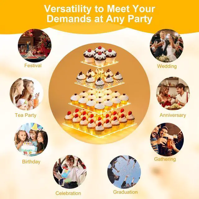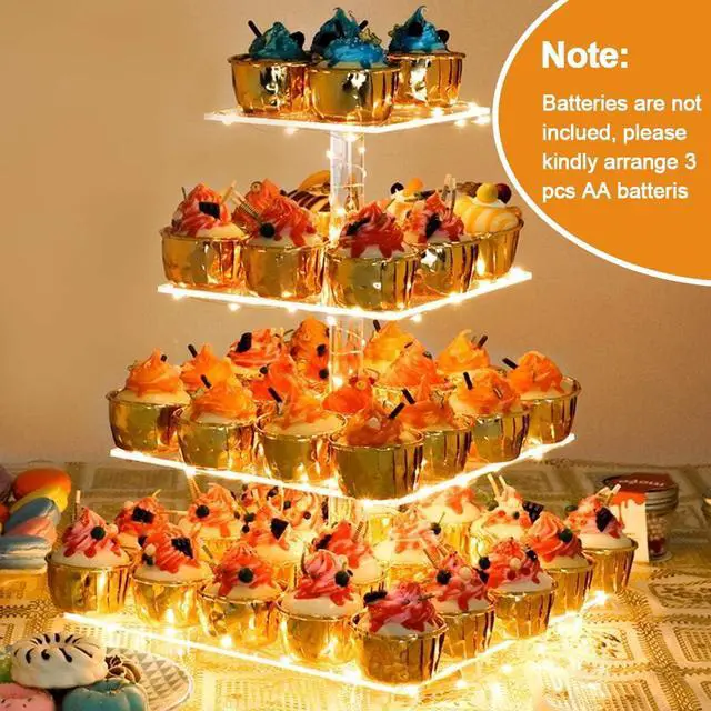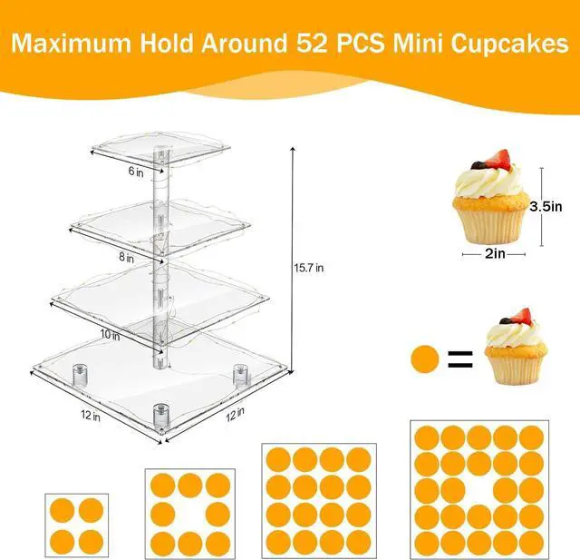 The clear acrylic desserts display stand can hold up to 12 lb of cupcakes, pastry, appetizers or 6‘’ cake.
