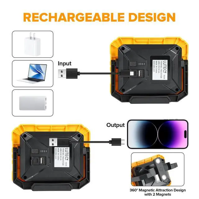 3500LM Super Bright: The LUTEC work light delivers up to 3500 lumens of high brightness (5000K). With three adjustable brightness levels, it adapts to various task requirements. Keep this portable light at home, in the basement, on the job site, at your workbench, in the workshop, garage, or vehicle trunk for emergencies.