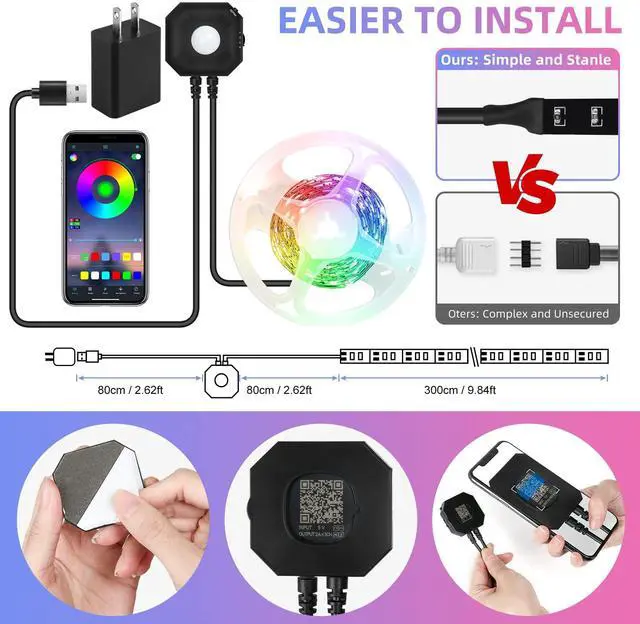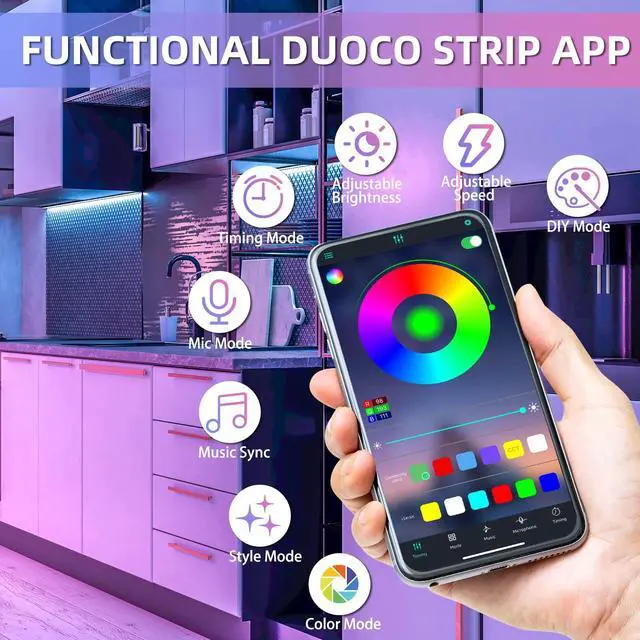 - MEMORY & TIMER FUNCTION - RGB LED light strip have memory function,it can remember the mode you have previously set.with the smart APP,you can automatically turn on and off at preset time and helping you control time and save energy.
