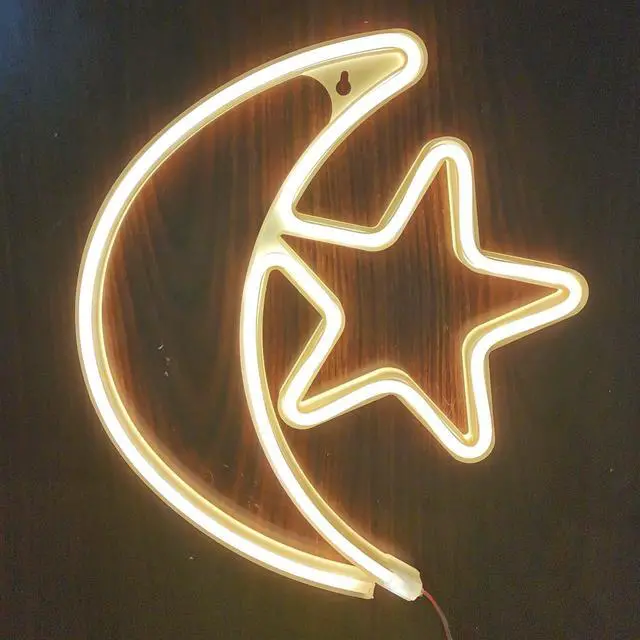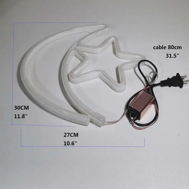 Led Neon Light Sign Moon Star Decor Wall Decor Art Sign Light 12" For Wedding Christmas Party Birthday Celebration Events Decoration Neon Sign In Baby Nursery Room Bedroom Aesthetic Room Hotel Neon Light Sign Moon Star Specification: