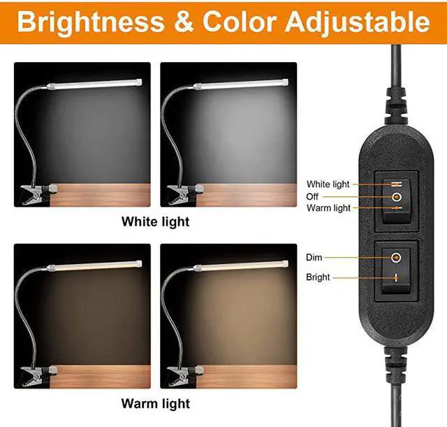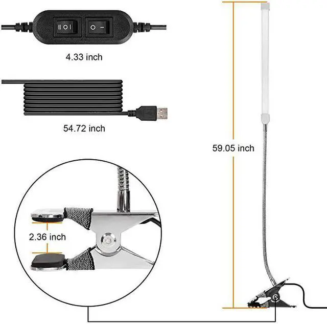 Clip on Light: with 14.96 inch flexible goose neck, easy to twist and set the perfect lighting direction. Made of top aluminium, more durable than others. with 2.36 inch maximum wide clip, it is easy to clip on everywhere, to save more space. ***** *****Come with