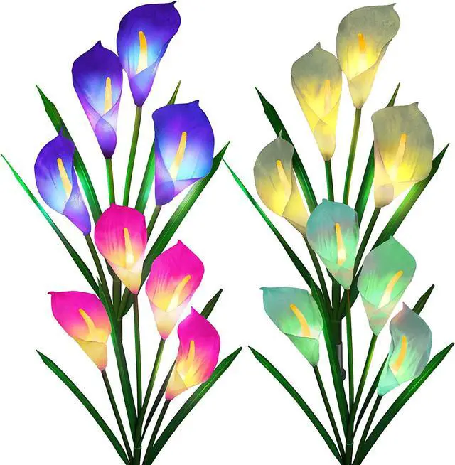 Flexible Stem and Leaves: The stem and leaves of solar lights outdoor garden are propped up by premium iron wires, which give ultra flexibility and durability and allow you to bend solar flowers in any styles. Outdoor solar lights will automatically light up in your garden and charge during the day, remember to turn the switch ON before using patio decorations outdoor.