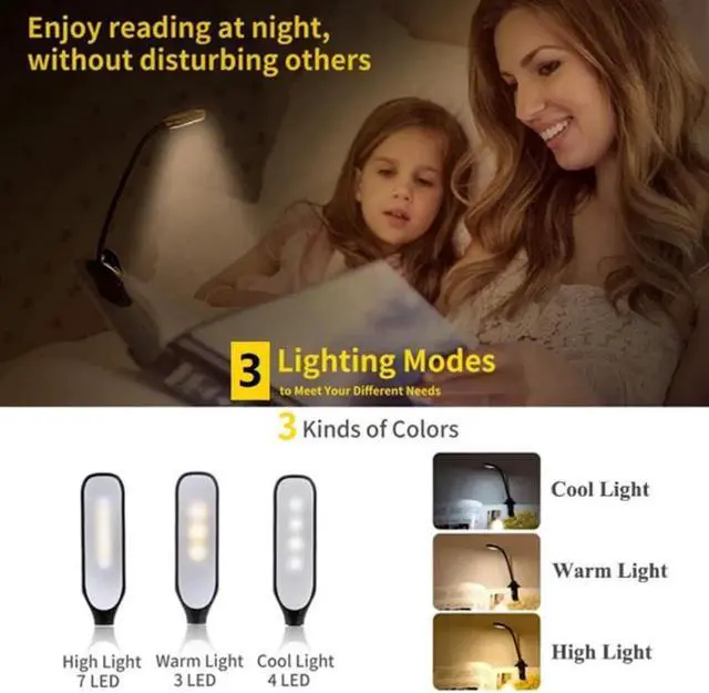 Upgraded 3 Brightness to Chosse 7LED and 3 Brightness modes in total, Featuring 3 color temperatures(3000K to 6500K) , Press the switch and hold for 3 seconds to change light color. Satisfying different light needs in daily life, such as reading, working, studying, sewing.
