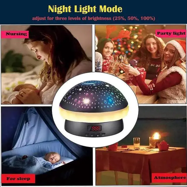 Projector Mode and Night Light Mode: The LED night light comes with 360 Degree Rotating with 16 color combinations and touch control to adjust 16 different colors as you like. The Night Light Mode providing soft light and white noise for midnight newborn feeding sessions, the comfort of a nightlight for kids or adults. ^