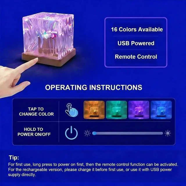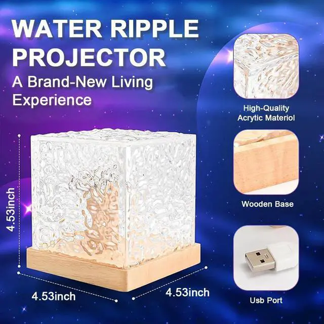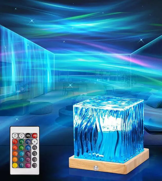 Crystal Cube Night Light ProjectorNorthern lights projector galaxy projector with its unique cube-shaped design that illuminates yr bedroom from 360 degrees with its 5 luminous surfaces.With 16 colors, 5 levels of brightness,and 4 speed, this ambient lighting offers a wide range of options.Using a remote control,U can choose yr preferred lighting effects.Using a remote control,u can choose ur preferred lighting effects.The night light can stimulate kids imagination and creativity,lay in bed watching the northern lights show. Kids projector can be used as a mood lighting and ambient lighting.Whether u r a kids or an adult,u can enjoy every peaceful night with night lights&kids projector.