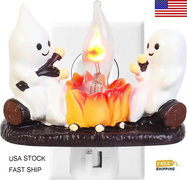 2025 HOT SALE Ghost Campfire Flickering Nightlight Fire Marshmallow Night Light Halloween Gift