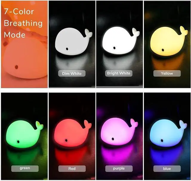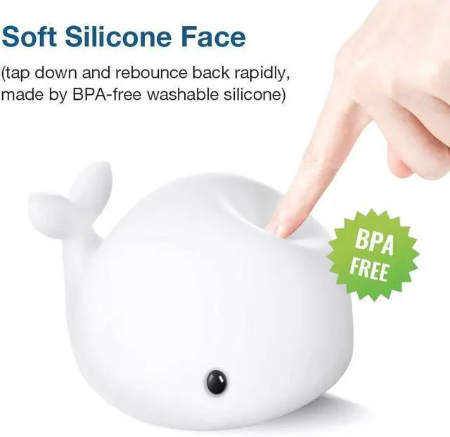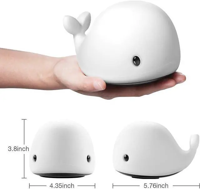OURRY Cute Whale Night Light for Kids,Kawaii Baby Night Light with 7 LED Colors Changing,Tap Control Nursery Squishy Night Lamp,USB Rechargeable,Birthday Gifts for Baby,Girls,Boys,Toddler,Children