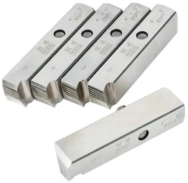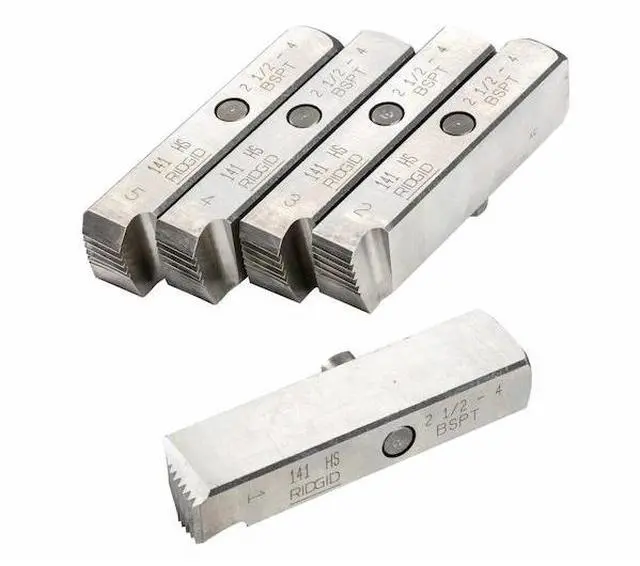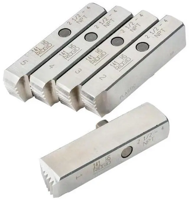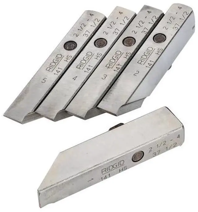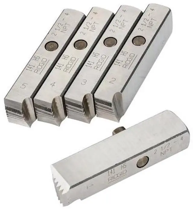 Replacement Pipe Die, Compatible Pipe Size 2 1/2 in to 4 in, Compatible Material Type Aluminum, Galvanized Steel, Steel, Thread Type NPT, Compatible Thread Direction Right Hand, Die Material High Speed Steel, Die Head Compatibility Ridgid 141 Geared, Compatible Threader Series 141 Receding Geared, Application Pipe, Number of Dies 5, Threads Per Inch 8, Compatible Threader Type Threading Machine, Compatible Die Head Grainger Part Number 6YJ38, Compatible Die Head Manufacturer Part Number 141. This item has been restricted from sale in the following state (s): []