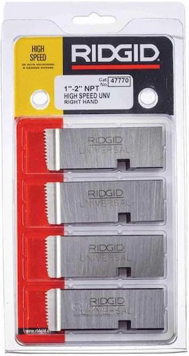 Replacement Pipe Die, Compatible Pipe Size 1 in to 2 in, Compatible Material Type Aluminum, Galvanized Steel, Steel, Thread Type NPT, Compatible Thread Direction Right Hand, Die Material High Speed Steel, Die Head Compatibility Ridgid Machine Universal, Compatible Threader Series 1215, 1224, 300, 535, Application Pipe, Number of Dies 4, Threads Per Inch 11 1/2, Compatible Threader Type Threading Machine, Compatible Die Head Grainger Part Number 4CW40, 4Z974, 5A195. This item has been restricted from sale in the following state (s): []