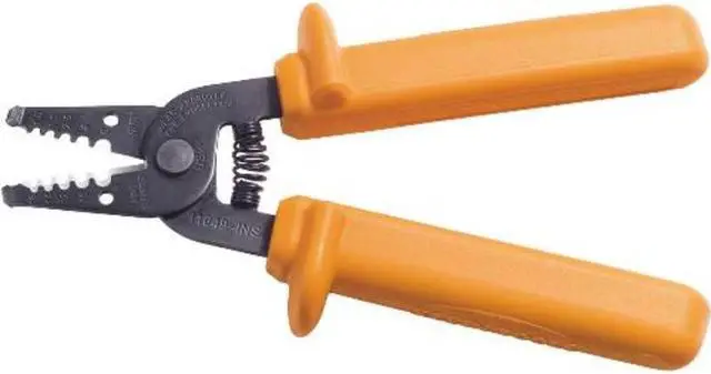 Klein Insulated Wire Stripper And Cutter 7 In.The line of insulated tools incorporates all of the Klein quality designs and construction, features that professionals have relied on for over 150 years. This insulated wire stripper has hi-visibility orange handles and a black oxide finish on the cutters protecting against rust. This is a compact, lightweight wire-stripping cutting tool. Individually dielectric ally tested Gauges, cuts, strips, and loops wire Spring-loaded for self-opening Narrow nose fits into tight places Cuts and Strips 8-16 AWG Stranded
