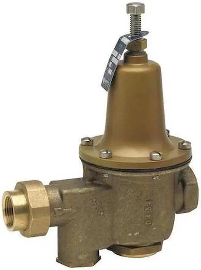 Water Pressure Regulator, Series LFU5B, Body Material Brass, Inlet Size 1 in, Outlet Size 1 in, Length 6 3/4 in, Height 7 3/8 in, Application Commercial Use, Residential Use, Connection Type FNPT Union x FNPT, Pressure Adjustment Range 10 to 35 psi, Gauge Port Size Not Applicable, Seal Material Not Applicable, Max. Temp. 160 Degrees F, Pipe Size 1 in, Max. Pressure 300 psi, Standards ANSI A 112.26. 2, ASSE 1003, CSA B356, IAPMO, UPC.