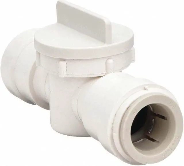 Quarter-Turn Reducing Supply Stop, Body Style - Valves Straight, Inlet Size 1/2 in, Inlet Type CTS, Outlet Size 1/4 in, Outlet Type Push to Connect, Max. Pressure 250 psi, Temp. Range 0 Degrees to 180 Degrees F, Body Material Polysulfone, Standards ASTM F87 7, CSA B 137.5, FDA Approved, IAPMO IGC 188-2004c Certified, NSF 14 And 61 Certified, NSF UP. This item has been restricted from sale in the following state (s): []