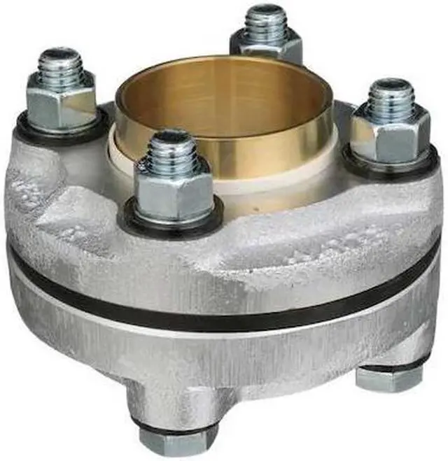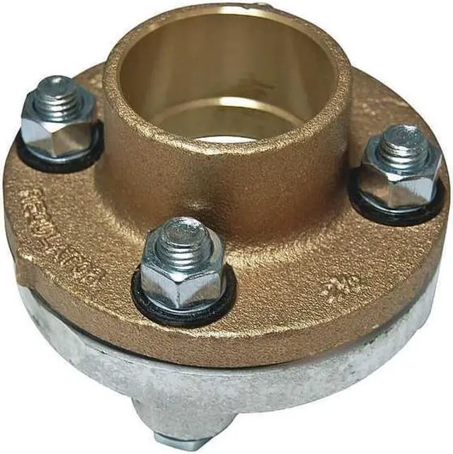 Dielectric Flange, 2 1/2 in, Female, NPT, Brass, 5 7/8 in, 2 1/2 in, Male, Solder, Zinc-Plated Galvanized, Gray Cast Iron, 5 7/8 in, Number of Bolt Holes 4, Silver, 175 psi Maximum Operating Pressure, Insulator Material Polysulfone, Includes Fasteners No, 33 Degrees to 180 Degrees F. This item has been restricted from sale in the following state (s): []