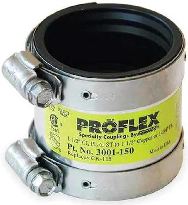 Shielded couplings are elastomeric sleeves with stainless steel shields for use in joining cast-iron, Schedule 40 plastic, and steel to copper DWV pipe.
