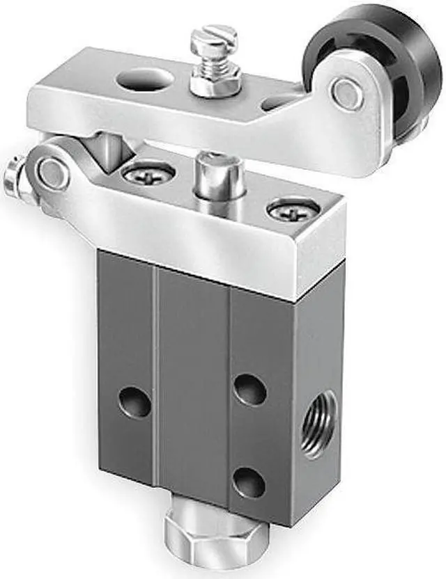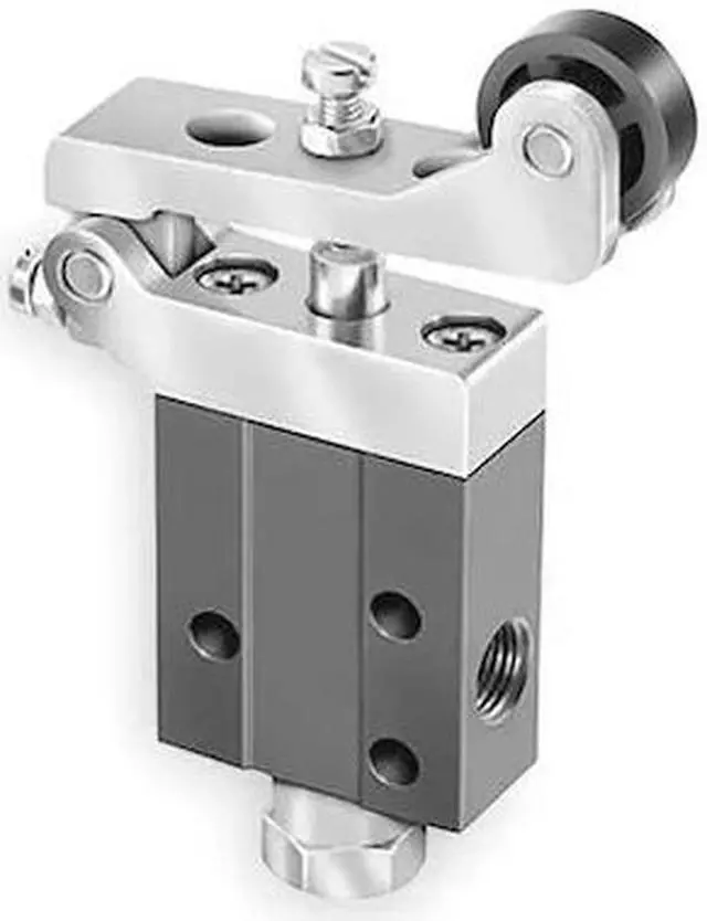 Manual Air Control Valve, Valve Ways and Positions 3-Way/2-Position, Valve Port Size 1/8 in, Connection NPT, Valve Actuator / Return Roller / Spring, Max. CFM - Valves 0.17 cfm, Valve Max. Pressure Rating 150 psi, Valve Temp. Range 32 Degrees to 175 Degrees F, Center Position Closed, Coefficient of Volume 0.2, Body Material Aluminum, Overall Length 4 3/16 in, Overall Height 2 1/4 in, Overall Width 5/8 in, Series DirectAir 2, Manual Air Control Valve. This item has been restricted from sale in the following state (s): []