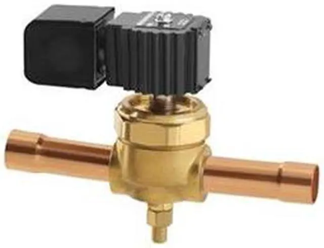 Refrigerant Solenoid Valve, Two Way Normally Closed, Sweat 7/8, ODF Connection, Port (In. ) 25/32 in, 49.9, 2.53 Degrees F, 50.6, 3.97 Degrees F, Safe Working Pressure (PSI) 450 psi, Brass, Synthetic Coated Metal, CE, CSA, UL. This item has been restricted from sale in the following state (s): []