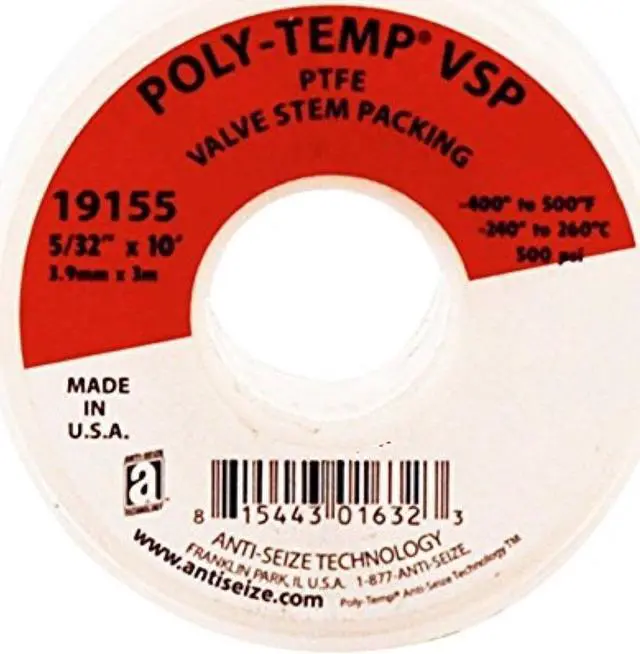Valve Stem Packing, Product Type Valve Stem Packing, Overall Length 10 ft, Ambient Temperature - Maximum 500 Degrees F, Pressure for Pumps - Maximum 500 psi, pH - Maximum 14 pH, External Coating Not Applicable, Temperature in Steam - Maximum 500 Degrees F, Standards FDA Approved, Seal Material PTFE, Shaft Speed - Maximum Not Rated, pH - Minimum 0 pH, Packing Seal Size 5/32 sq in, Pressure for Valves - Maximum 500 psi, Ambient Temperature - Minimum -400 Degrees F, Color White. This item has been restricted from sale in the following state (s): []