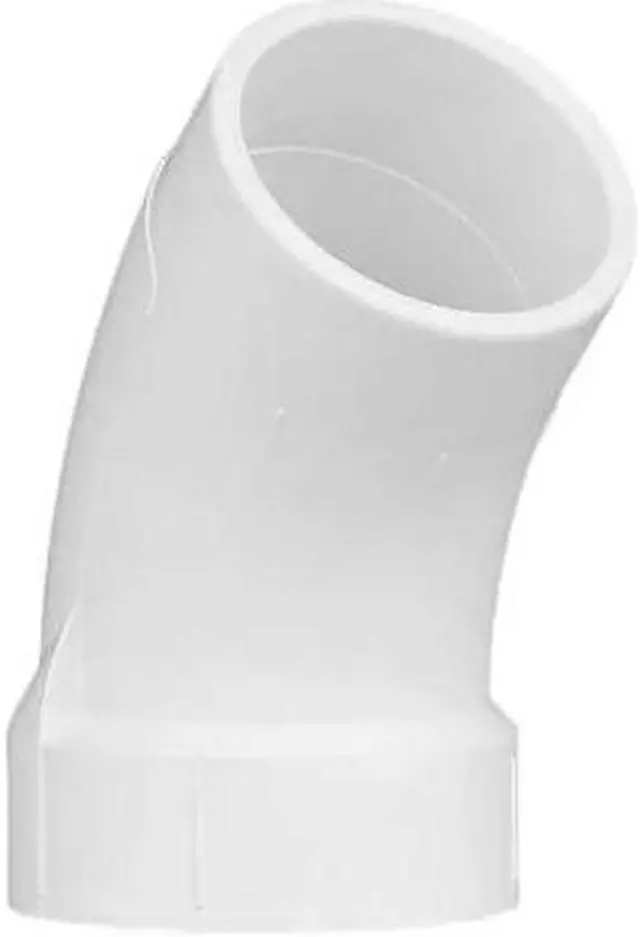 Street Elbow, 45 Degrees, Pipe Fitting Material PVC, Fitting Schedule/Class Schedule 40, Pipe Size - Pipe Fitting 2 in, Fitting Connection Type Hub x Spigot, Max. Pressure Not Rated For Pressure Applications, Color White, Max. Temp. 140 Degrees F, Standards ASTM D1784, Cell Class 12454. This item has been restricted from sale in the following state (s): []