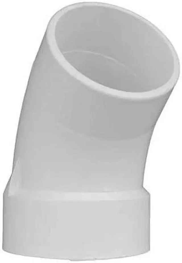 Street Elbow, 45 Degrees, Pipe Fitting Material PVC, Fitting Schedule/Class Schedule 40, Pipe Size - Pipe Fitting 4 in, Fitting Connection Type Hub x Spigot, Max. Pressure Not Rated For Pressure Applications, Color White, Max. Temp. 140 Degrees F, Standards ASTM D1784, Cell Class 12454. This item has been restricted from sale in the following state (s): []